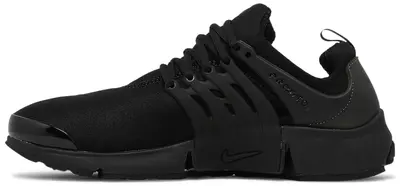 The Nike Air Presto Triple Black is a sleek, monochromatic take on one of Nike’s most iconic silhouettes. Originally released in 2000 as part of Nike’s Alpha Project, the Air Presto was designed to be a “T-shirt for your feet,” offering a snug, adaptive fit through a stretch mesh upper and simplified sizing system. This “Triple Black” edition takes that signature design and wraps it in an all-black colorway—from the upper and laces to the midsole and outsole—resulting in a clean, understated look that fits effortlessly with any wardrobe.